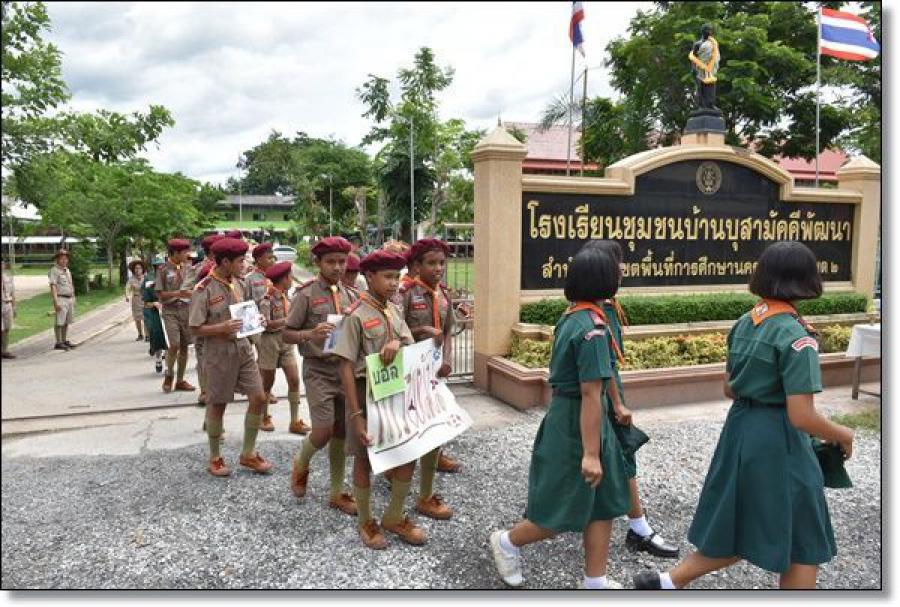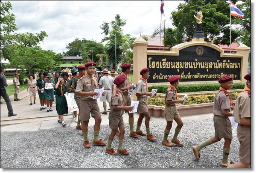 โรงเรียนชุมชนบ้านบุสามัคคีพัฒนา ร่วมกับ สพป.นครราชสีมา เขต 2 สถานีตำรวจภูธรจักราช และส่วนท้องถิ่นอำเภอจักราช ร่วมรณรงค์ให้เยาวชน และผู้ปกครองไม่เล่นการพนันฟุตบอล S:0